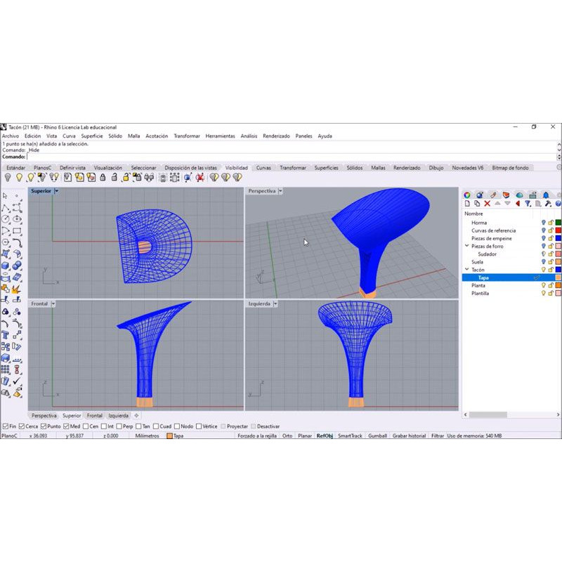 Rhino – це багатофункціональна програма для тривимірного моделювання, що спирається на технологію NURBS. Така основа дає змогу з максимальною точністю будувати та редагувати форми будь-якої складності: від простих геометричних об’єктів до органічних поверхонь із численними вигинами. Продукт широко застосовується в архітектурі, промисловому дизайні, ювелірній справі, а також у машинобудуванні й прототипуванні, де важливо дотримуватися найдрібніших допусків і параметрів.